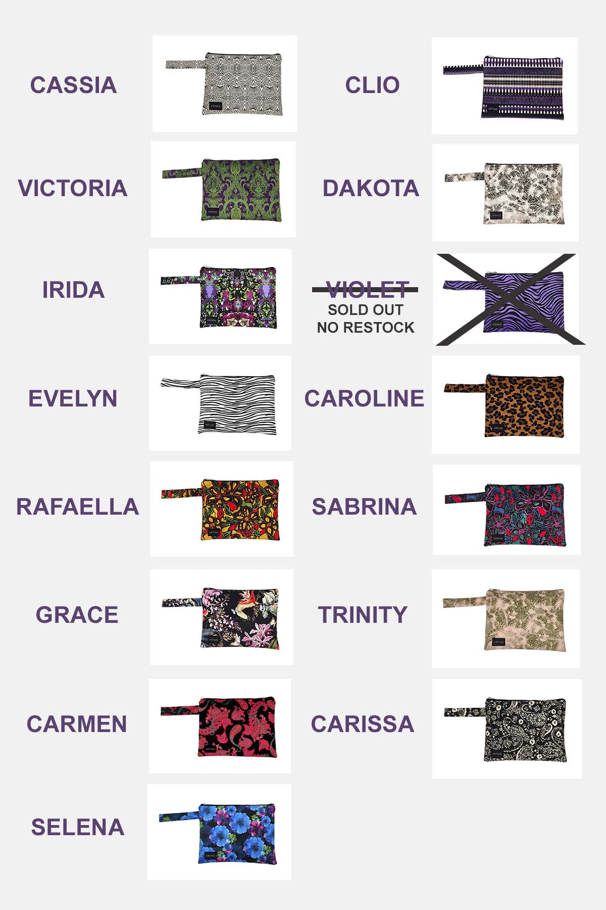 | Materials: | Twelve bags are from velvet fabric and three from faux fur fabric, synthetic lining |