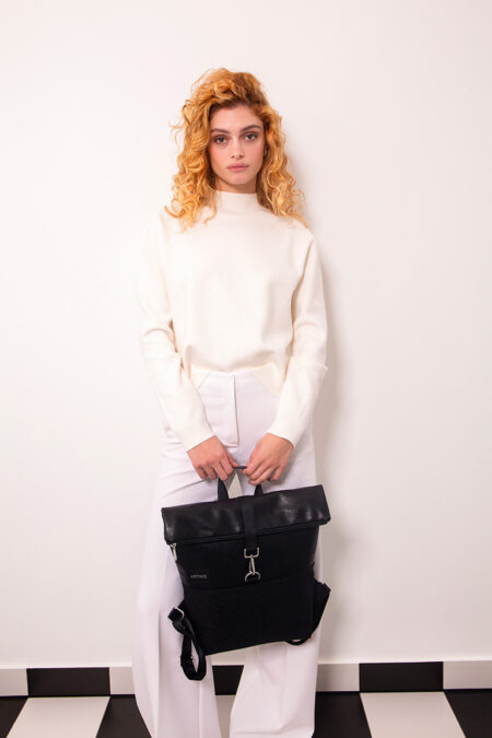 It has a zipper closer and an adjustable strap measuring 0,75- 0,95 meter in length.