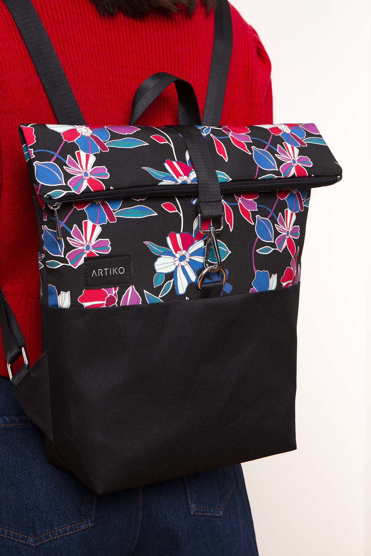 | Color: | Black, red, petrol & magenta |