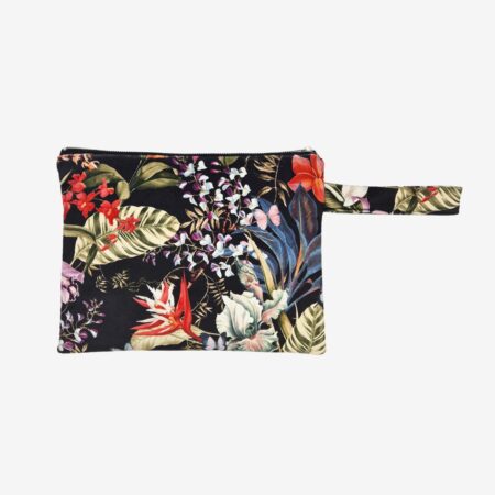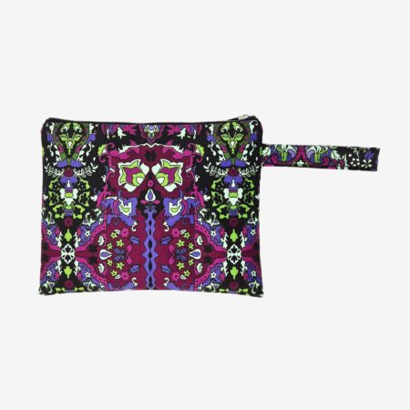 €35.00Size: L30 x H24 Materials: Velvet fabric, synthetic lining Color: Purple, black, green & magenta Care: Do not wash. Do not dry clean. Do not bleach. Do not tumble dry. In case of an emergency, spot wash only as follows. Apply a small amount of stain remover to any exterior or interior stains using a soft cleaning cloth. Allow it to sit for about 30 minutes. Gently scrub the bag, then rinse thoroughly and air-dry. Please be aware that bag patterns may vary due to textile design.